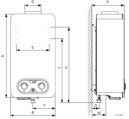 Encendido electrónico por baterías LED indicador de funcionamiento Modulación automática de gas en modelos WR Evacuación (ø) 5l: 90 mm Evacuación (ø) 10l: 110 mm Evacuación (ø) 14l: 130 mm